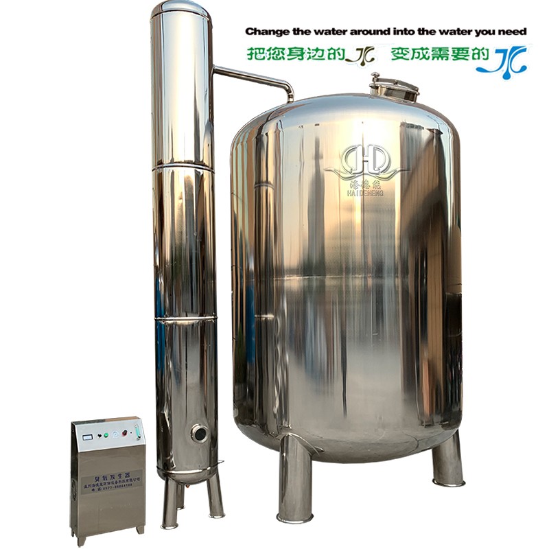 臭氧是經過管道進入氧化塔底部,經過曝氣器,經微孔鼓泡器發出另微氣泡,氣泡在上升的過程中把臭氧充沛溶解于水。水是由臭氧塔的頂部散落下來,在從臭氧塔的頂部天然流走。確保了臭氧與水混合的充沛時刻。使滅菌作用更測底,頂部又配有 尾氣排放和溢流口,確保剩余的臭氧不會停留在室內。影響作業人員出產。溢流口確保混合塔內部水滿后,水不會倒流回到臭氧發生器,損壞臭氧發生器。