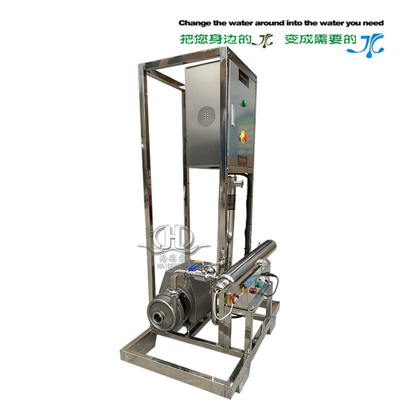 純化水分配系統(tǒng)的主要目的在于通過分配泵和純化水分配管路將純化水輸送到每個用水點。為保證管路中純化水的流速和壓力,純化水設備設計人員應計算純化水分配系統(tǒng)管路系統(tǒng)和管路中設備所帶來的壓力損失,從而選擇合適的分配泵。純水分配系統(tǒng)還應該包含附加的設備,在維持純化水水質(zhì)的同時,對純化水進行進一步純化和消毒,并對管路中水質(zhì)進行監(jiān)控。因此需要采用管路紫外線裝置以降低管路純化水的微生物和總有機碳水平。