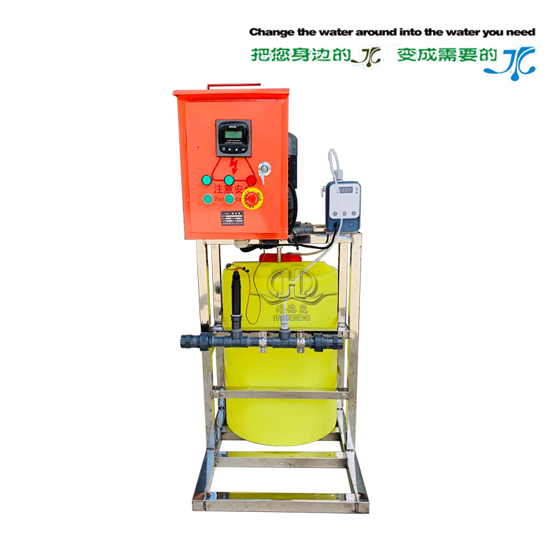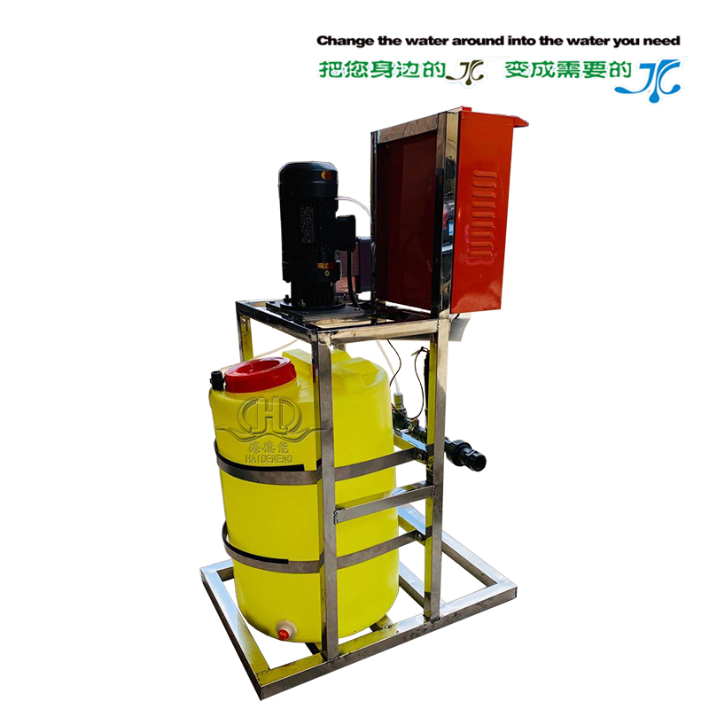 2、加藥裝置通過不同的工藝設(shè)計(jì),精確配置各類固體和液體的化學(xué)藥品的溶液,再用計(jì)量泵準(zhǔn)確投加,以達(dá)到各種設(shè)計(jì)要求。如除垢、除氧、混凝、加酸、加堿等。