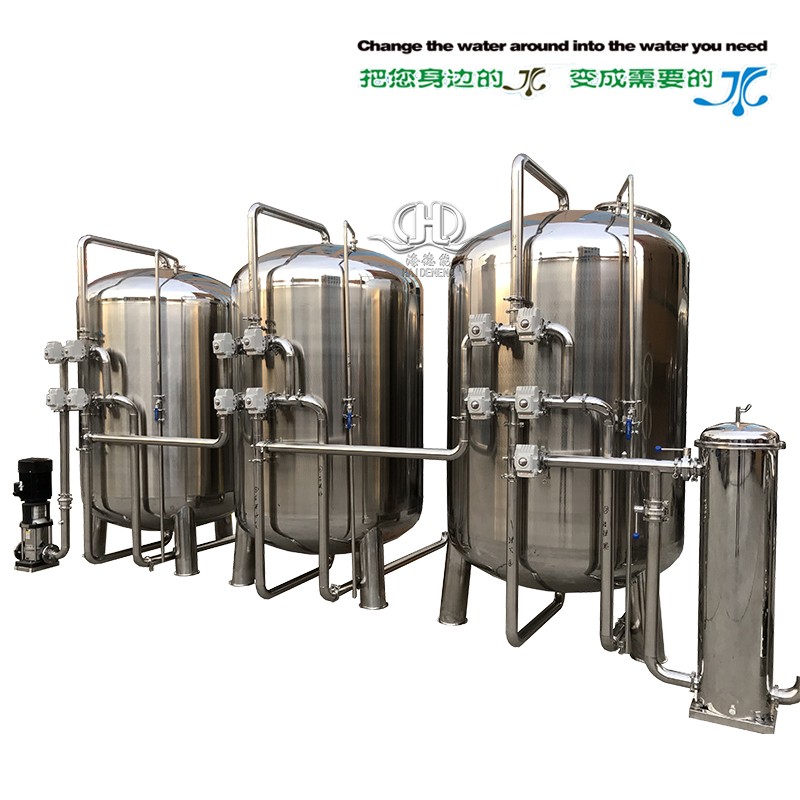 活性炭具有較強的吸附過濾性能,對水中的余氯、異色、異味、有機物等具有較強的吸附作用。由于反滲透膜對余氯、有機物十分敏感,所以必須配置活性炭吸附余氯、有機物,使出水余氯≤0.1mg/L,SDI≤4,第一可以滿足反滲透膜的給水要求。第二可大大的提高源水的原有的口感.可隨時通過多路控制閥或汽動蝶閥進行反洗,以沖洗掉其表面的膠體等污染物,防止活性炭表面被雜質包圍起不到吸附作用,并防止其堵塞,恢復其處理能力。