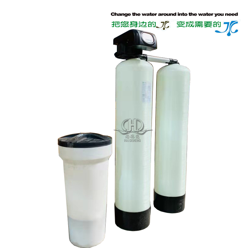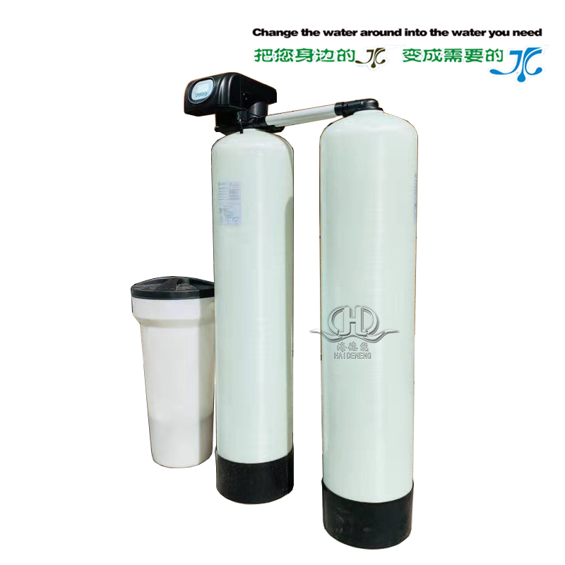 先供水,未處理的水通過樹脂層,發生交換反應,產生軟水。然后反洗,水從樹脂層下部進入,松動樹脂,去除細碎雜物。再進鹽水再生:利用較高濃度的鹽水(Nacl)流過樹脂,將失效樹脂重新還原為鈉型樹脂。再進行沖洗:按照供水時的流程使水通過樹脂沖洗掉多余的鹽液和再生交換下來的鈣、鎂離子。最后注水,向鹽箱內注水,溶解食鹽,以備下次再生所用。