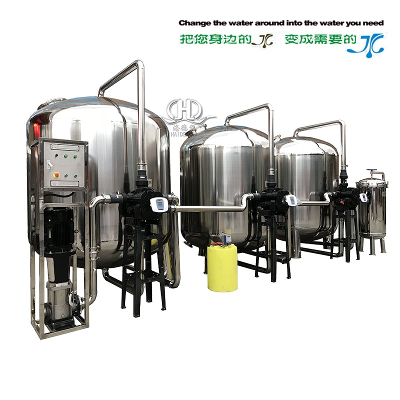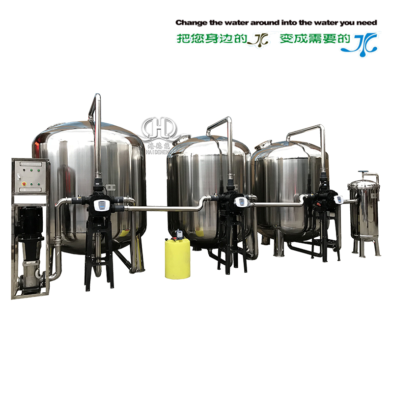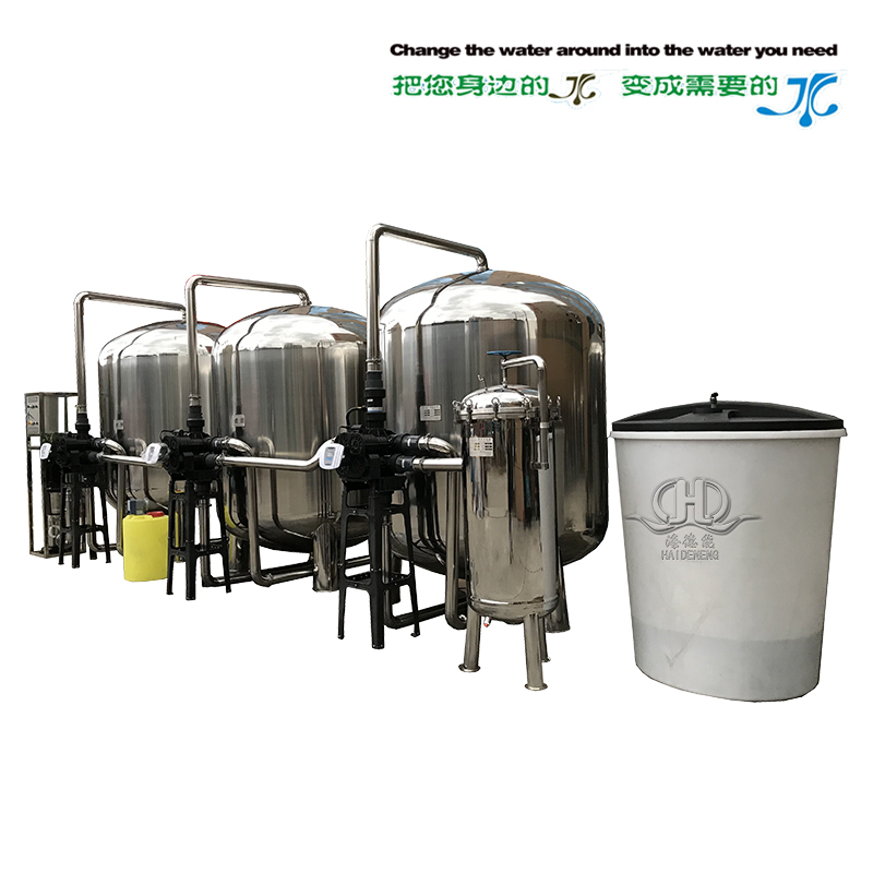 1、目前該設備采取全自動多路閥閥控制反沖洗,設備全不銹鋼制做,原理:采用多介質深層過濾,活性炭吸附源水中大量的余氯異味,再經過軟化水器鈉離子交換去除源水中的總硬度,并經過1UM的精密過濾器過濾使出水達到更優于自來水標準最后用進口飛利普紫外線UV滅菌器滅菌。得出水達到生活及配料的軟水要求.因此整機裝置簡單,操作、維護和自控簡便,現場安全衛生。