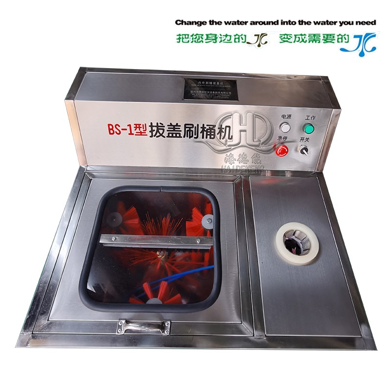 為了適應廣大礦泉水廠、純凈水廠廠家的需要,將繁瑣的空桶處理工藝變為簡單自動化。引進并吸收了國內外刷桶拔蓋的先進技術,結合現有廠家的實際情況及飲用水行業管理的要求,研制開發了刷桶拔蓋機。該設備性能可靠、操作簡單、維護方便。